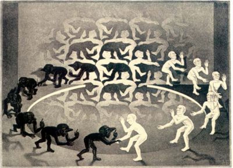 Drawing hands.